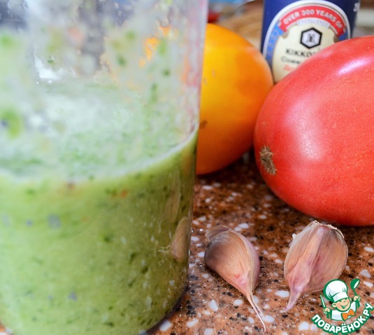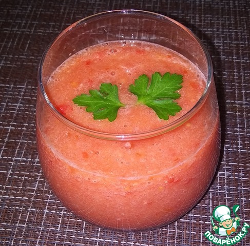 Есть спелые-спелые помидоры, пара огурчиков?! Значит давайте готовить смузи, всего 5 минут... и на столе освежающий витаминный напиток. Угощайтесь.