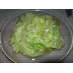 • Соломку кабачка полить заправкой, перемешать.