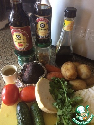 - Соевый соус (Киккоман сладкий -1,5 ст.л для капусты Киккоман нат. брожения 1 ст.л -для лука)