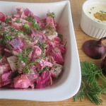 Картофель, морковь тщательно помыть щёткой и поставить отварить. Свёклу отварить отдельно или запечь. Я использовала запечённую накануне.