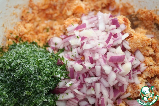 Мелко режем петрушку, если есть перья зеленого лука, то тоже можно добавить.
