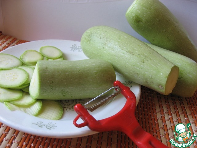 Кабачки помыть и очистить. Если кабачки молодые, как у меня на фото, можно делать вместе с кожицей.