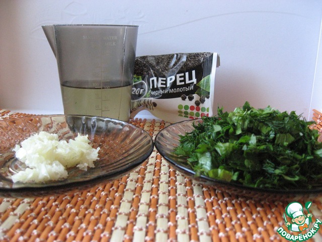 Чеснок пропустить через пресс, смешать: - с растительным маслом,