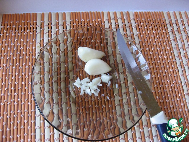 Мне больше нравится, если чеснок мелко-мелко резать, так больше выделяется чесночного сока и эфирного масла.