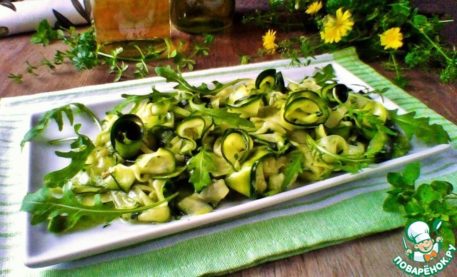 Эту закуску научилась готовить, живя в Душанбе, ещё в прошлом веке... Эта летняя, вернее сезонная, закуска из молодых, а возможно, уже зрелых кабачков (цуккини). Готовится быстро, а съедается ещё быстрее! Очень вкусная, нежная, с лёгкой остринкой и терпким вкусом мёда. Удобнее её готовить вечером, а утром и другое время суток, подавать на угощение. Вкусные! Название говорит само за себя.