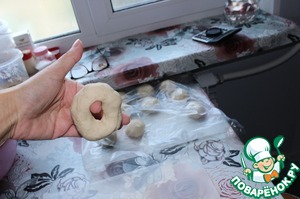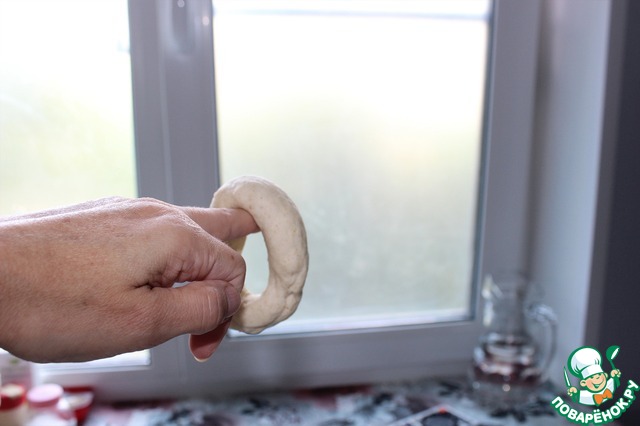 1. "Колобки" отдыхают поочередно пока работаю со следующей порцией теста. Т.е. когда закончила формировать последний колобок - начинаю из первого формировать бублик.
