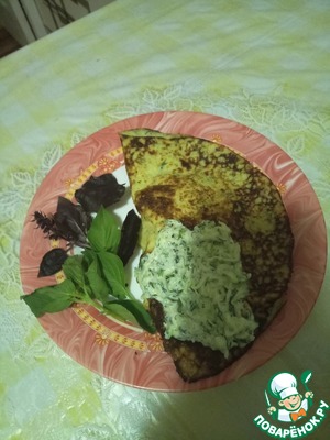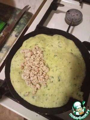 А потом аккуратно лопаткой приподнимаем свободный край, и накрываем им начинку
