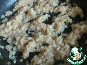 Высыпать в сковороду, где жарилось мясо и слегка обжарить.