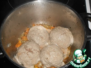 Из готового фарша сформируем 4 шара (это и будут наши "зайцы") и выложим их в кастрюлю, вот такие красавцы у нас получились!