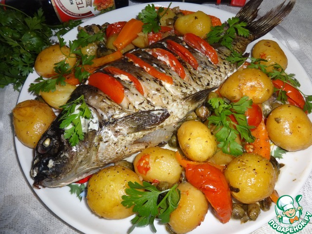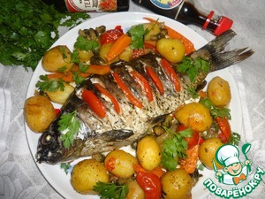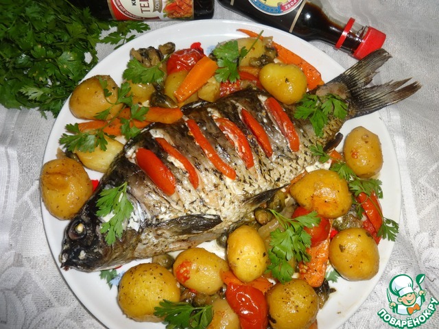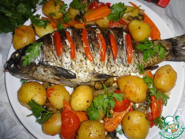 Рецепт «Карп с овощами, фаршированный луком»: