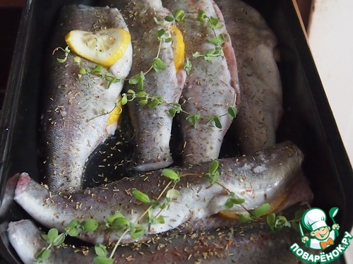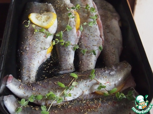 Количество продуктов дано условно, зависит от размера формы и количества имеющейся рыбы. В мою форму помещается как раз шесть небольших форелей.