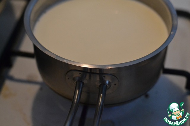 В кастрюльке подогреть сливки, не кипятить, а сильно нагреть