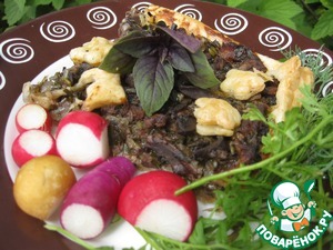 Разрезаем на порции и подаем с пылу, с жару со свежими овощами и зеленью.