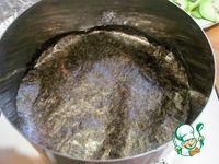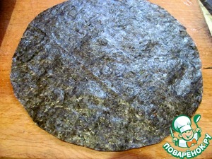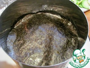 Один лист нори вырезать по диаметру кольца. Диаметр кольца 16 сантиметров.