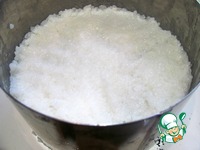 Накрыть слоем риса. Очень хорошо уплотнить.