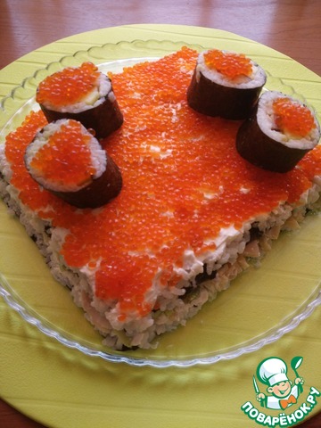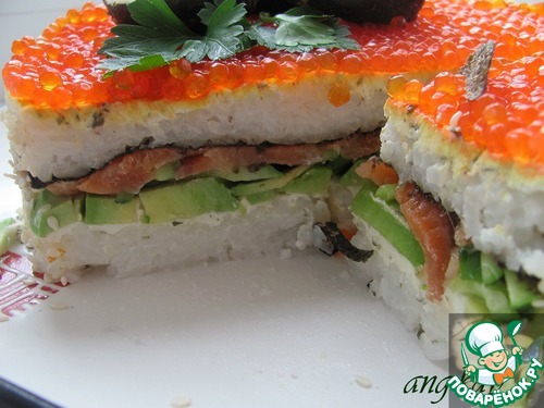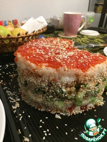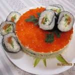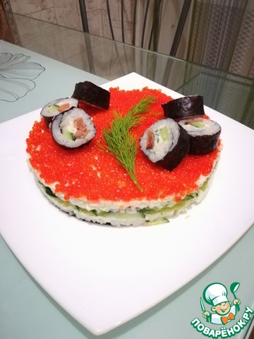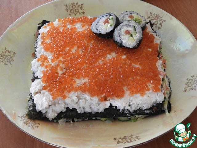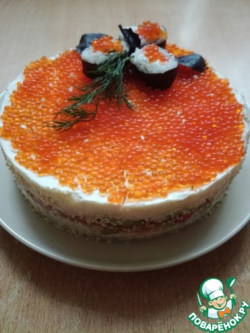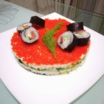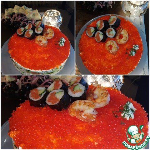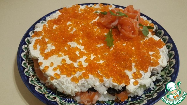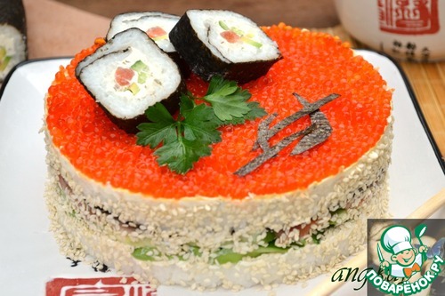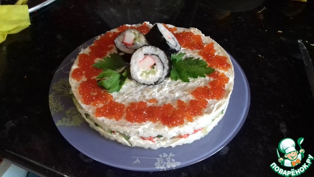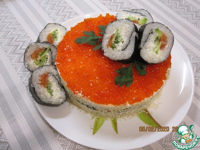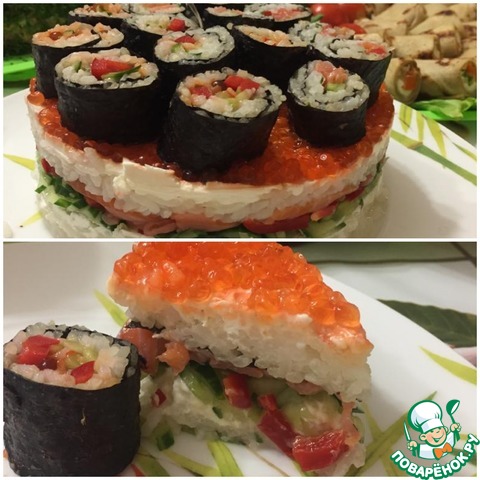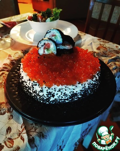 Очень эффектное, праздничное блюдо. Вкусно. Кто не любит крутить роллы, а любит их поедать - хороший выход. Такой торт не только понравится вашим близким, но и очень удивит гостей. Приступим.