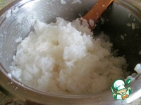 Влить заправку в рис и аккуратно перемешать, желательно деревянной ложкой. Дать настояться.