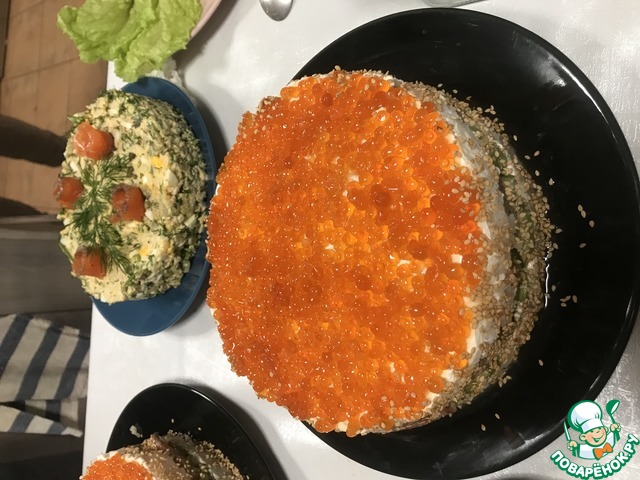 - Икра красная (у меня белковая, можно взять натуральную) — 80 г