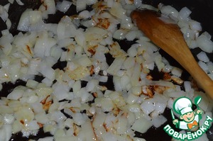 Лук нарезать кубиком и обжарить на растительном масле до легкой золотистости.