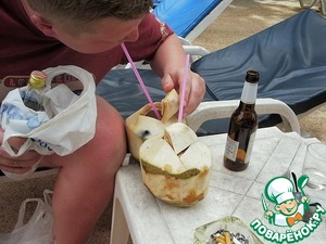 И так, берем кокос. Вскрываем и отпиваем молока…