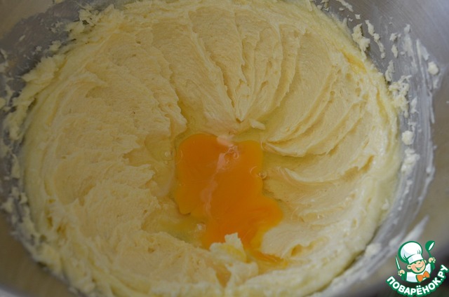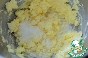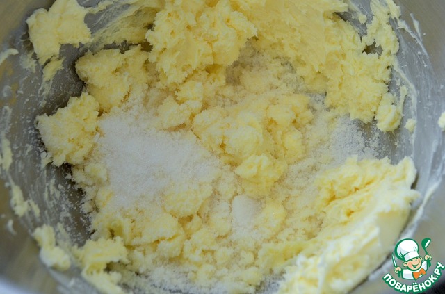 Мягкое сливочное масло взбить с сахаром, до пышности. -
