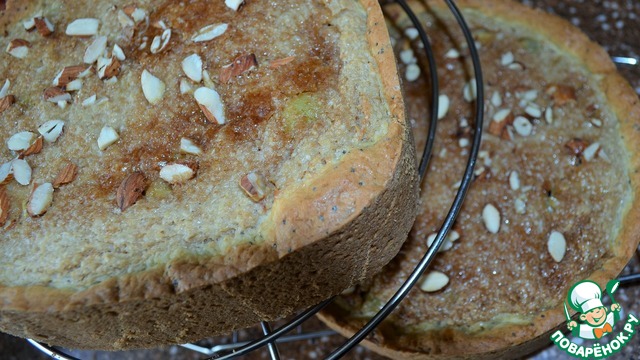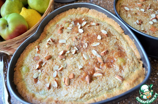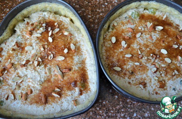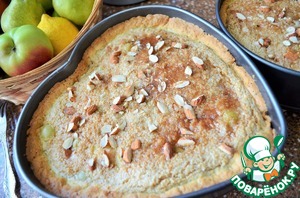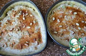 Посыпать сахаром и рассыпать рубленный миндаль.