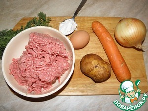 - Фарш мясной (300-400 г любой, у меня свинина+говядина) — 300 г