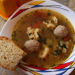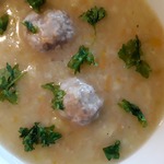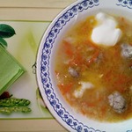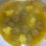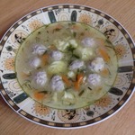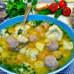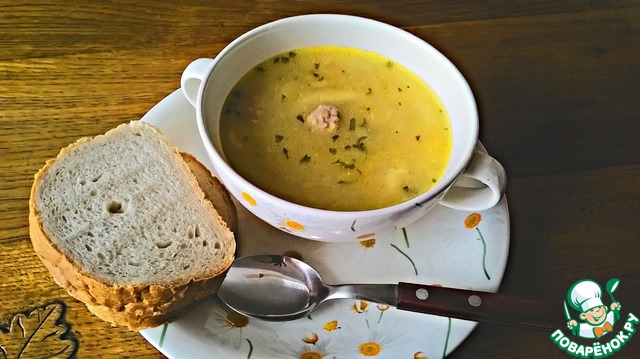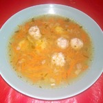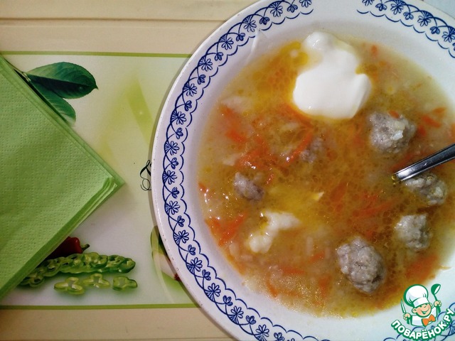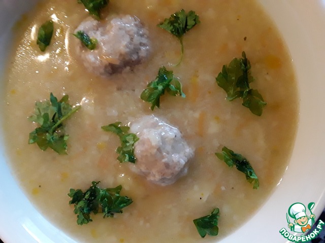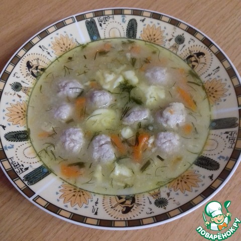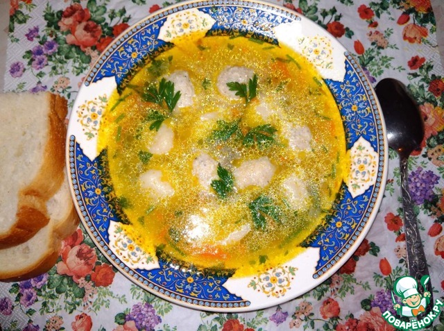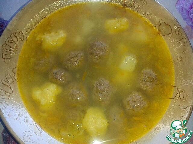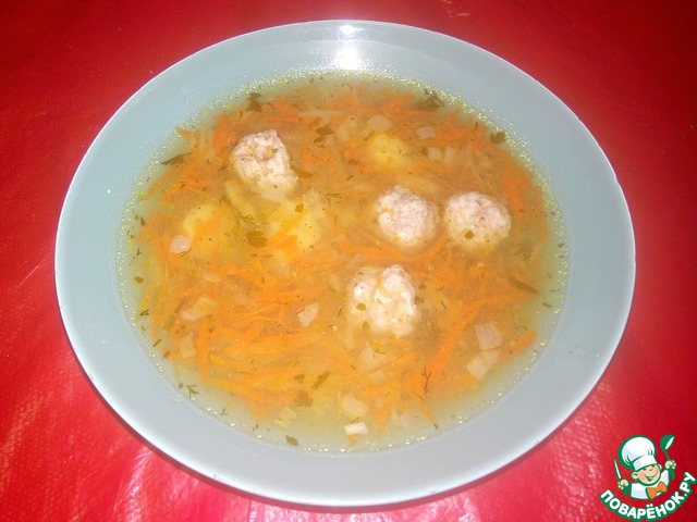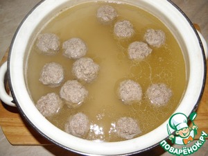У меня был уже бульон, поэтому фрикадельки я отварила отдельно (если нет готового бульона, то варим как обычно). Во фрикадельки для этого супа я кроме специй ничего не добавляю, они и так прекрасно держатся (если хотите, делайте их по своему желанию)