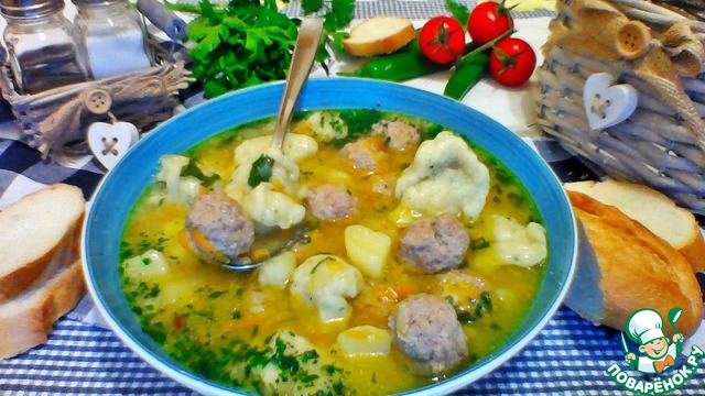 Ингредиенты для «Суп с галушками и фрикадельками»: