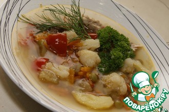 - Бульон (2- 2,5 л - зависит от количества продуктов) — 2 л