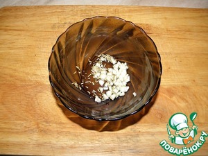 Чеснок мелко порубить и добавить к нему розмарин, уксус, перемешать.