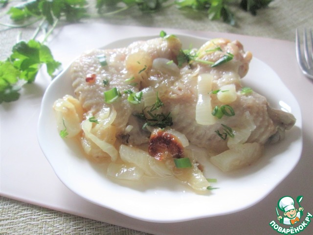 Рецепт «Жареная курица с луком на бульоне»:
