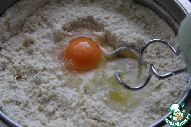 Все перетереть в крошку. Я использовала миксер с крючками для замеса теста, чтобы не грелось от рук.