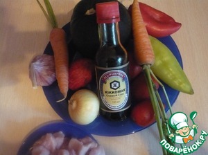 • Добавляем к овощам перец нарезанный полосками, помидоры нарезанные кубиком и мелко нашинкованный чеснок. Тушим 15-20мин. до готовности.