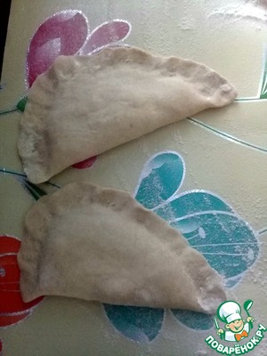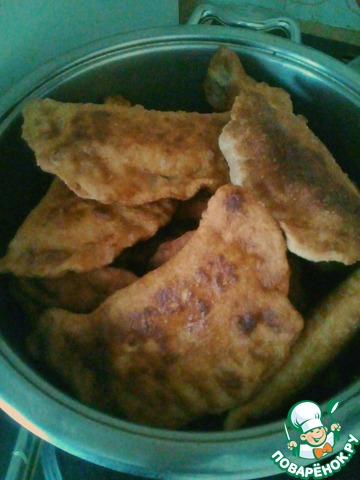 Налить масло в сковороду и разогреваем его. Жарим чебуреки с двух сторон.