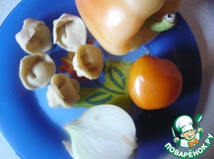 Варим тортеллини вместе с кусочками перцев, выкладываем на тарелку.