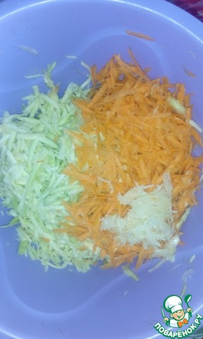 Морковь и кабачки натрём на крупной тёрке, чеснок на мелкой тёрке