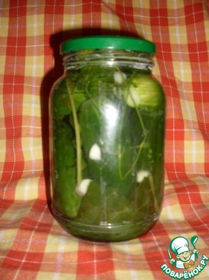 - Огурец (примерно, чтобы влезло в две литровых банки. Но, конечно, можно засаливать в любых других емкостях, кому как удобнее. Это просто для расчета.) — 1 кг