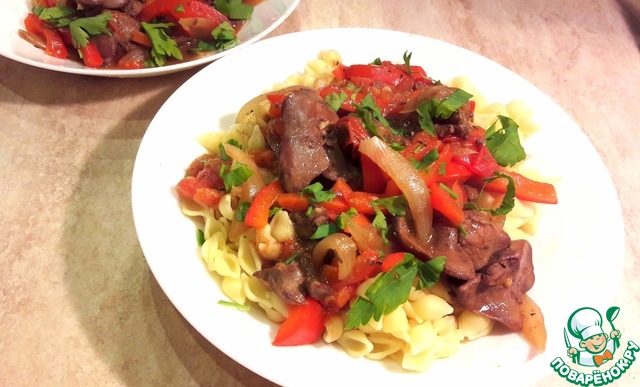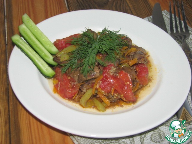 Печень с томатами и перцами
