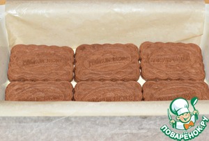 Далее нам понадобится печенье. Я использую самое доступное печенье "Юбилейное". (такое двойное, с какао и с шоколадной прослойкой) В принципе, можно взять любое печенье на ваш выбор. Главное, чтобы оно хорошо поместилось в форму.