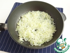 В сковороду наливаю растительное масло, добавляю нарезанный репчатый лук. На небольшом огне довожу лук до мягкости.