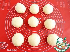 Формирую из кусочков теста шары, накрываю их пленкой, оставляю их в покое на 10-15 минут.