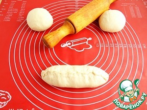 Для приготовления пирожков я использую упаковку сосисок, в которой их 9 штук. Так как, повторюсь, пирожки получаются большими, Вы можете использовать большее количество сосисок. Тогда тесто нужно делить на их количество. Делю тесто на 9 равных частей.