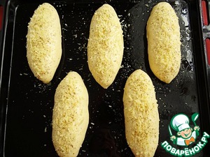 Посыпаю пирожки тертым пармезаном (можно использовать любой твердый сыр), прованскими травами.