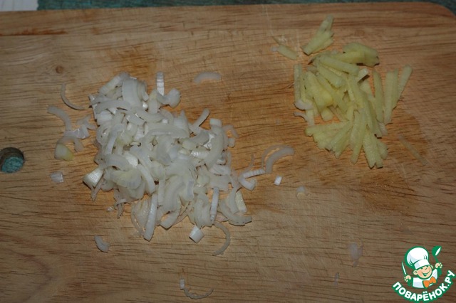 На сковороде разогреть масло. Обжарить лук, имбирь и поломанный на кусочки бадьян.