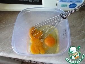 Разбиваем 3 яйца и перемешиваем их, перемешиваем но не взбиваем!