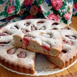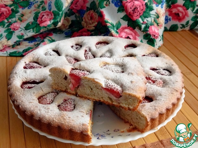 Простой в исполнении и вкусный пирог, с ароматными ягодами клубники. Выглядит очень нарядно и необычно - попробуйте!