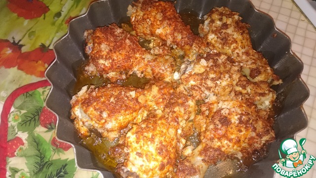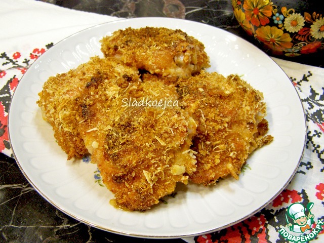 [+5]Я голени с солью и перцем мариновала пару часов, далее по рецепту. Белый хлеб и сыр вместе измельчила в блендере мне так удобнее.
