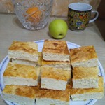 Делим его на 2 части, каждую часть раскатываем в пласт толщиной 1 см. Смазываем взбитым яйцом и присыпаем сахаром, разрезаем на порционные кусочки. Выпекаем в духовке при 180° до румяной корочки около 15-20 минут.