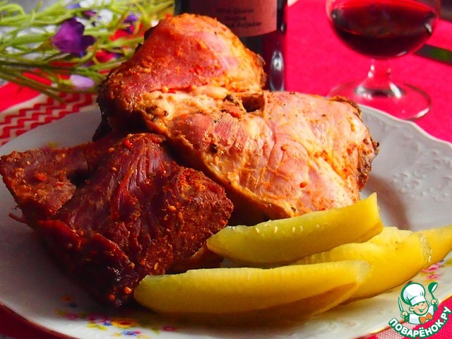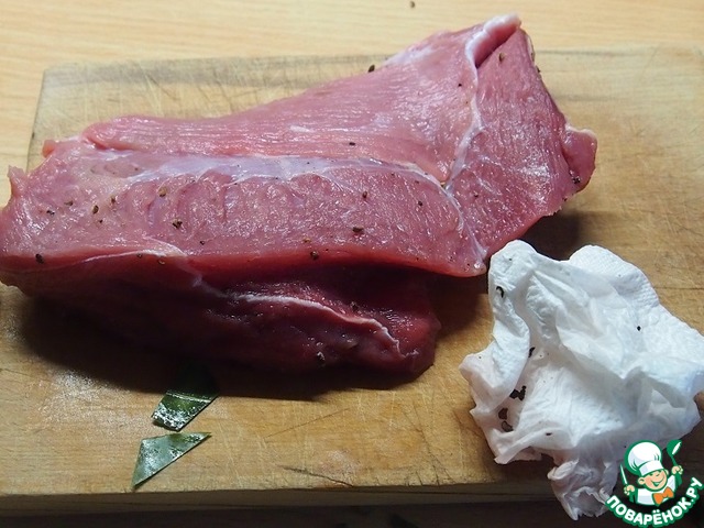 Мясо натереть этой смесью и оставить на два-три часа или на ночь. Затем с помощью салфетки убрать куски перца и лаврового листа с мяса.